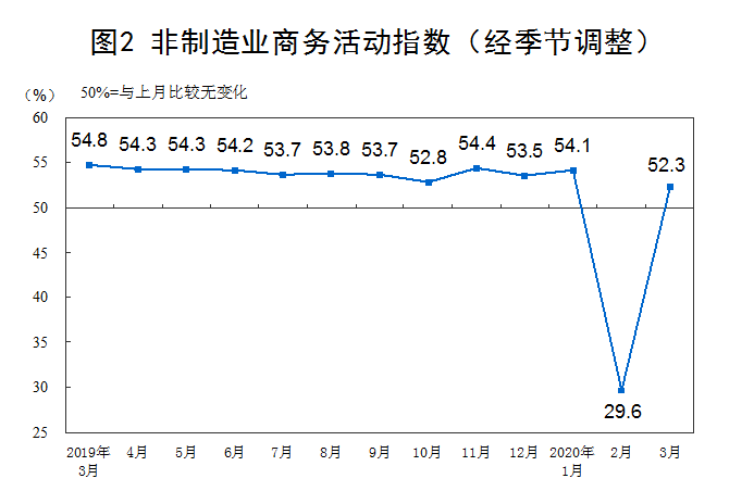 3月份,非制造業(yè)商務活動指數(shù)為52.3%,比上月回升22.7個百分點。