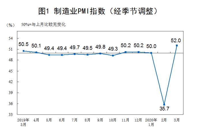 2020年3月中國采購經(jīng)理指數(shù)運行情況